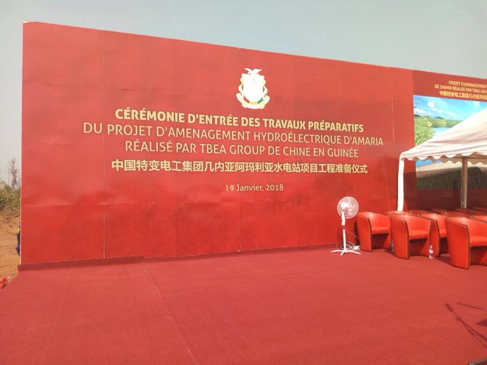 1月19日,几内亚能源水利部和特变电工集团联合举办了几内亚AMARIA水电站启动仪式。孔戴总统、能源水利部长西拉、地矿部长马嘉苏巴、特变电工总裁张新、中国驻几内亚使馆经商处王宝忠参赞等出席了启动仪式。