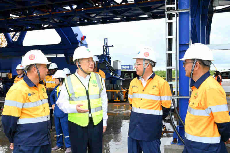 9月28日,孙勇大使赴马瑞巴亚港考察,与西芒杜项目部分中资参建企业座谈,了解项目进展,就安全生产、建设质量、员工权益保障等方面提出工作要求。